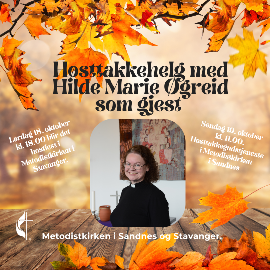 Søndag 19. oktober blir det høsttakkegudstjeneste i Metodistkirken i Sandnes kl. 11.00. Preken ved Hilde Marie.